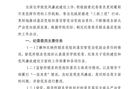 ?中共武威職業(yè)學(xué)院紀(jì)律檢查委員會(huì)委員聯(lián)系基層黨組織工作辦法為深化學(xué)院黨風(fēng)廉政建設(shè)工作,積極…[詳細(xì)]更新時(shí)間:2025-01-07