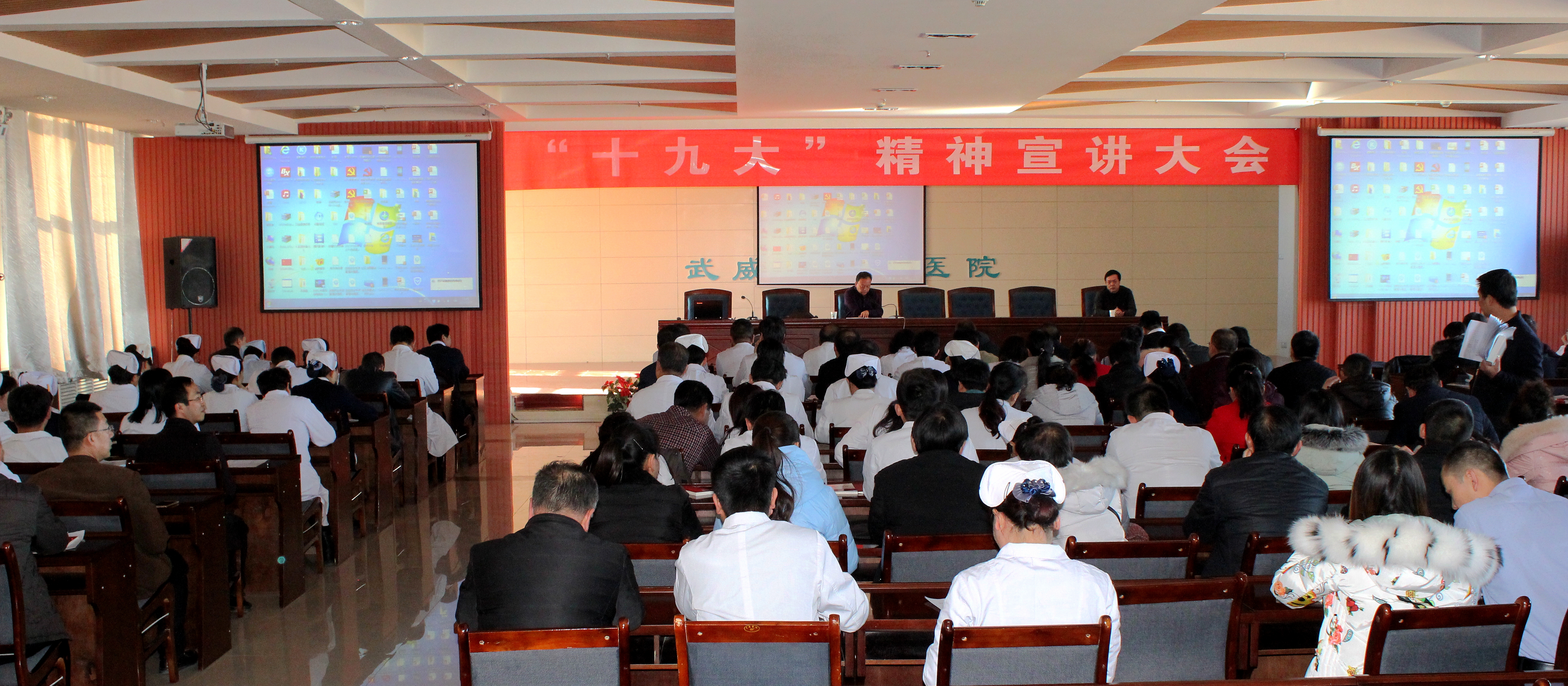 12月27日,直屬附屬醫(yī)院在內(nèi)科七樓舉行黨的十九大精神宣講報告大會。會議邀請武威市委講師團副團長張生龍作宣講報告。直屬附屬醫(yī)院黨委書記陳鋼主持報告會。醫(yī)院全體共產(chǎn)黨員、中層以上干部160余人聆聽了宣講報告。