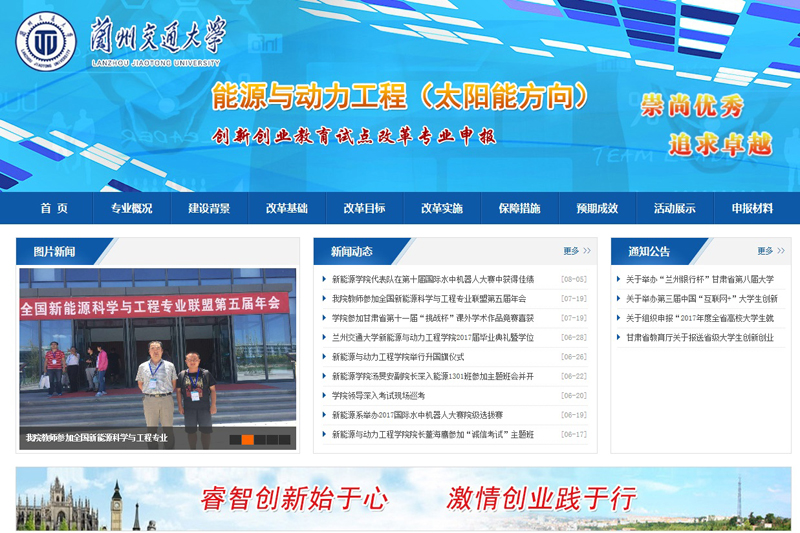 2017年度學院以平臺建設為抓手,積極開展專業(yè)建設,取得重大進展,以“深化內涵發(fā)展、服務地方經(jīng)濟”為目標,積極開展校企合作,取得明顯實效。其中學院申報的能源與動力工程專業(yè)獲批甘肅省創(chuàng)新創(chuàng)業(yè)試點改革專業(yè);與天合光能有限公司達成協(xié)議由其出資的“思源陽光”基金會每年提供5萬元的創(chuàng)新創(chuàng)業(yè)獎學金;與北京海瑞克有限公司達成協(xié)議為新能源科學與工程專業(yè)的優(yōu)秀學生提供獎學金;與北京群菱能源科技有限公司達成協(xié)議冠名贊助學院新能源開發(fā)與利用知識競賽;與蘭州海紅技術股份有限公司、甘肅建投武威新能源有限公司、中節(jié)能涼州發(fā)電公司等企業(yè)簽訂協(xié)議成立校外教學實習基地。