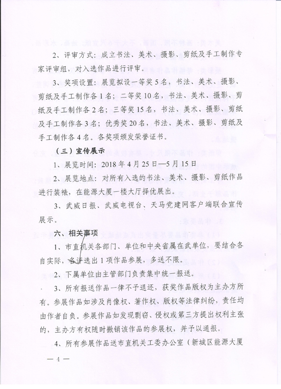 關(guān)于組織參加武威市直屬機(jī)關(guān)“不忘初心 牢記使命”藝術(shù)作品展的通知