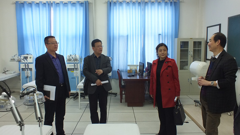 藥學系主任魏潤明和醫(yī)學技術系主任楊如松陪同來賓先后參觀了學院一期建設成果以及藥學專業(yè)實驗室、口腔醫(yī)學技術專業(yè)實訓室和中醫(yī)康復治療技術專業(yè)實訓室等。