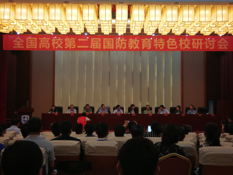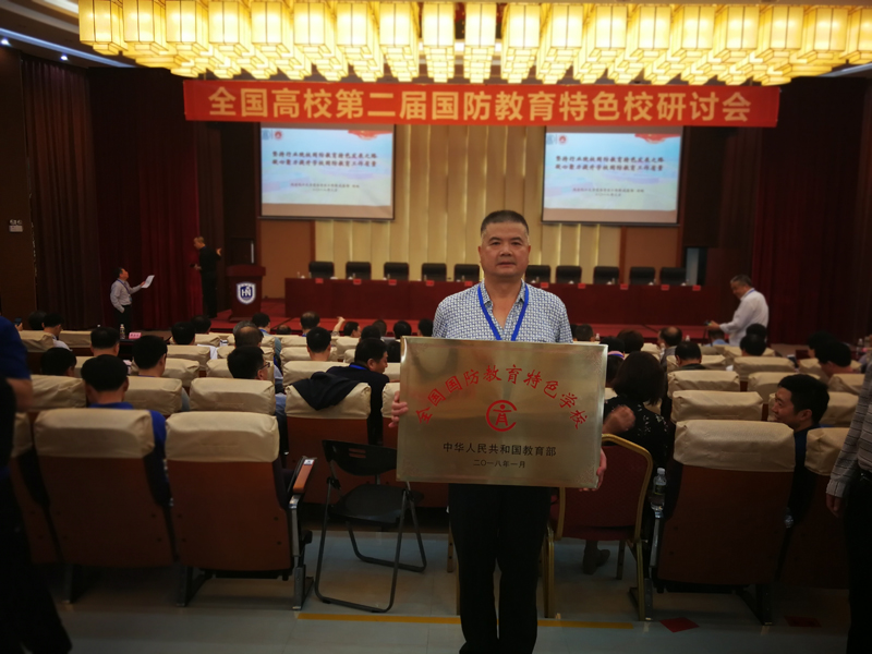 在會上,中國高等教育學會國防教育工作委員會組委會向?qū)W院頒發(fā)了“全國國防教育特色學校”牌。