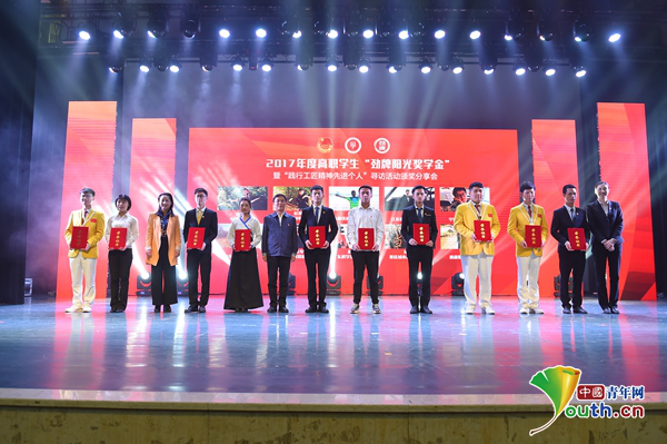 4月19日,2017年度高職學(xué)生“勁牌陽光獎學(xué)金”暨“踐行工匠精神先進(jìn)個人”尋訪活動頒獎分享會在寧波職業(yè)技術(shù)學(xué)院舉行?;顒佑蓤F中央學(xué)校部、全國學(xué)聯(lián)秘書處、勁牌有限公司聯(lián)合開展,共評選出10名特別獎獲得者和300名優(yōu)秀獎獲得者。我院人文藝術(shù)系林露同學(xué)榮獲2017年度高職學(xué)生“勁牌陽光獎學(xué)金”暨“踐行工匠精神先進(jìn)個人”優(yōu)秀獎。