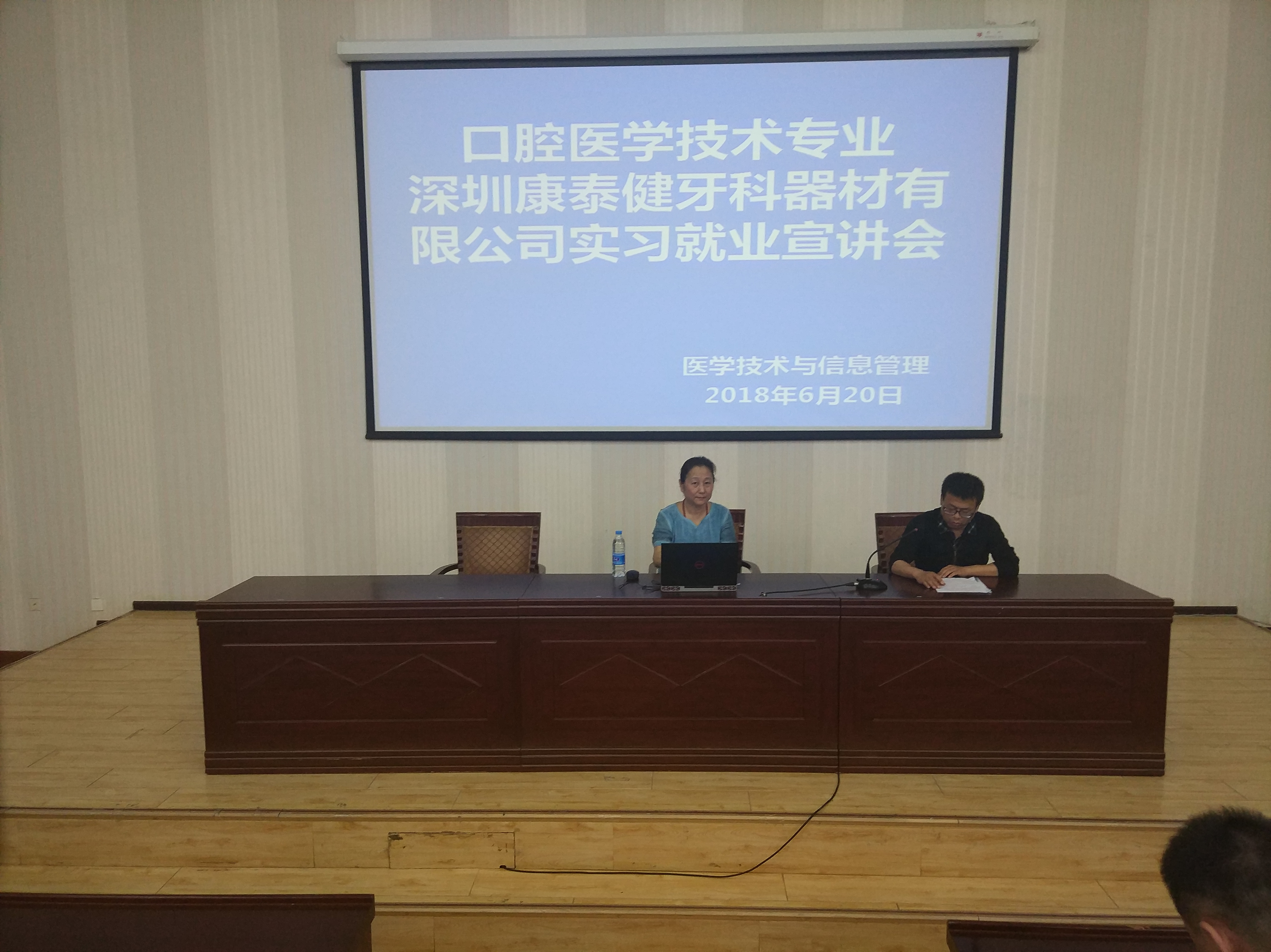 6月20日,醫(yī)學技術與信息管理系邀請深圳市康泰健牙科器材有限公司在正德廳召開企業(yè)實習就業(yè)宣講。參加宣講會的有康泰健牙科器材有限公司培訓學校校長辛金紅,口腔技術專業(yè)教研室全體老師,在校口腔醫(yī)學技術專業(yè)學生。宣講會由系副主任蔡濟眾主持。