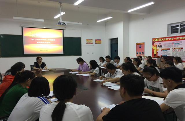 為深入了解教學(xué)過程中存在的問題,進(jìn)一步加強(qiáng)教學(xué)質(zhì)量監(jiān)控與評(píng)價(jià),完善“四位一體”教學(xué)質(zhì)量監(jiān)控體系和“五位一體”教學(xué)質(zhì)量評(píng)價(jià)體系,6月21日晚上,系書記晏素珍同志深入各班開展評(píng)教評(píng)學(xué)活動(dòng),并組織各班教學(xué)質(zhì)量信息員及學(xué)生代表召開了2017-2018學(xué)年第二學(xué)期的教學(xué)質(zhì)量信息員暨學(xué)生代表大會(huì)。