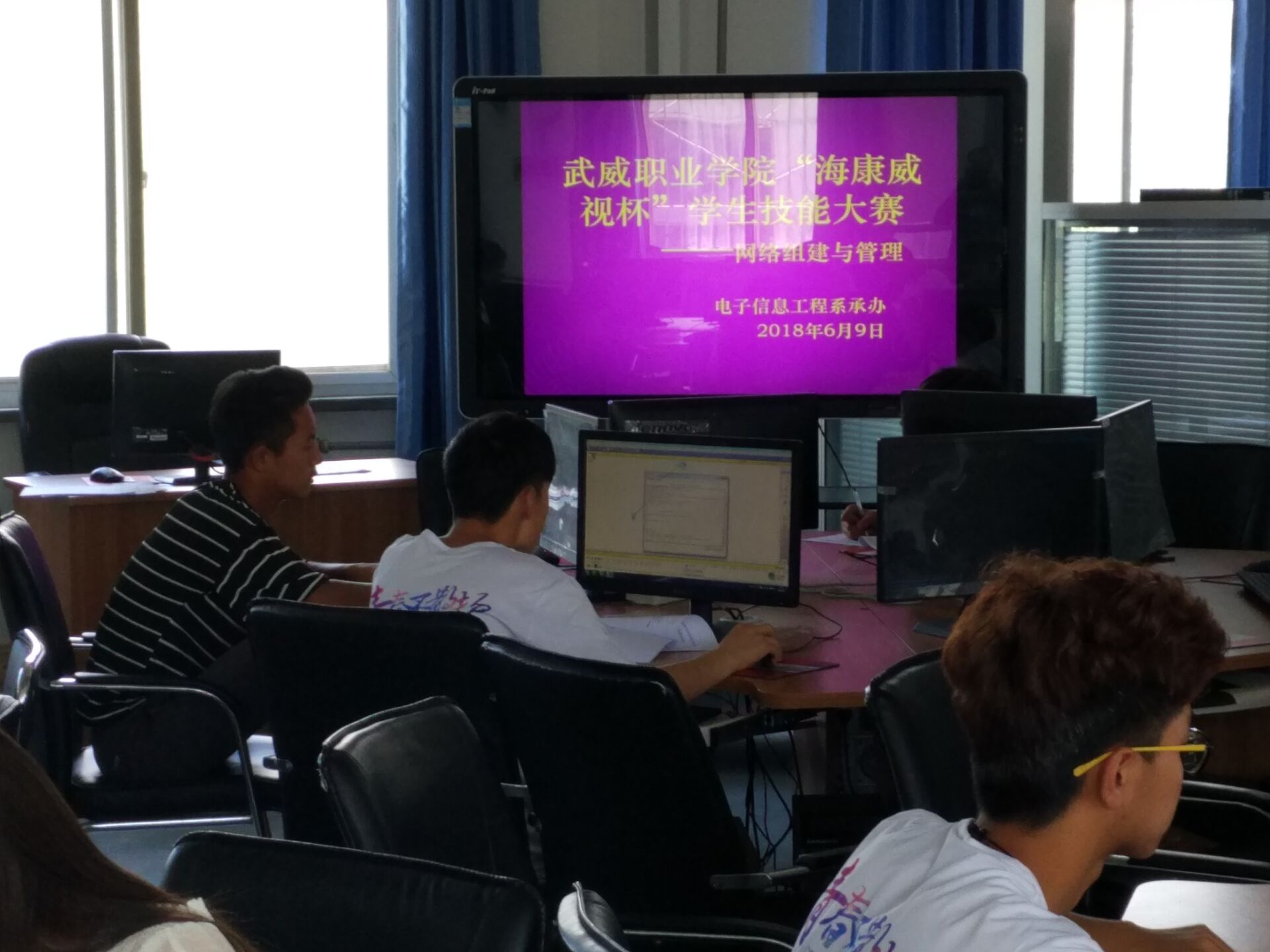 為了進一步提高學生實踐和應用技能,有效提升學生在各類技能大賽中的競技能力,我系承辦的2018年“海康威海杯”-組網與網絡管理項目組技能大賽于6月9日上午如期舉行。