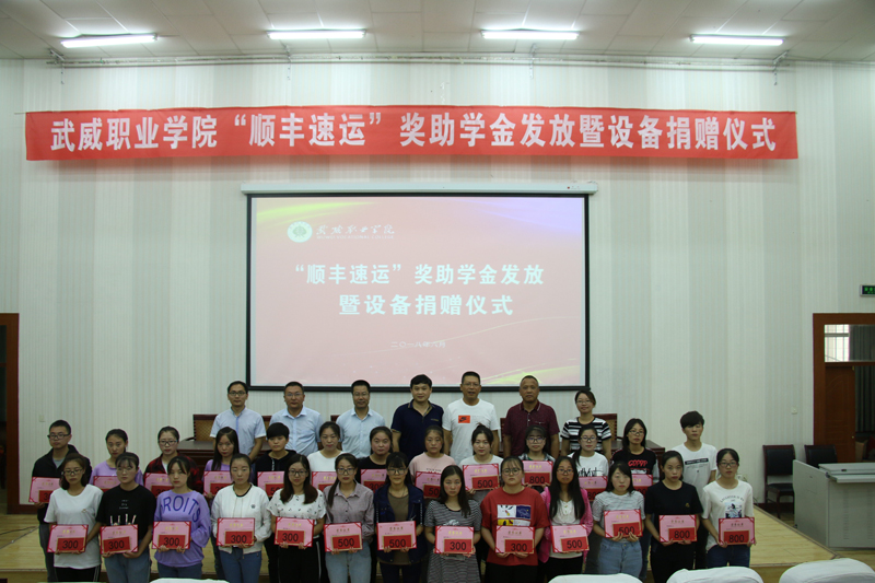 6月26日,武威職業(yè)學(xué)院“順豐速運(yùn)”獎(jiǎng)助學(xué)金發(fā)放暨設(shè)備捐贈(zèng)儀式在學(xué)院正德廳舉行。江蘇順豐速運(yùn)江蘇順豐通訊服務(wù)有限公司副總經(jīng)理張輝華先生,武威職業(yè)學(xué)院黨委委員、副院長(zhǎng)王永緒同志、江蘇順豐通訊服務(wù)有限公司人力資源部經(jīng)理孫潞、項(xiàng)目經(jīng)理高國(guó)軍、招聘經(jīng)理明微、經(jīng)濟(jì)管理系書(shū)記潘從民、主任張伯成、物流專(zhuān)業(yè)教師代表和物流專(zhuān)業(yè)16、17級(jí)全體同學(xué)及相關(guān)專(zhuān)業(yè)學(xué)生代表近200人參加本次儀式。發(fā)放儀式由潘從民主持。