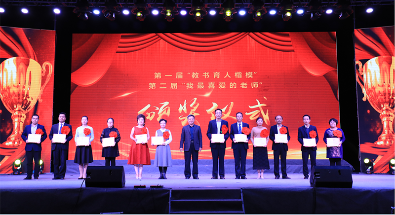 晚會期間,趙明為獲得學(xué)院第一屆“教書育人楷模”和第二屆“我最喜愛的老師”稱號的12位教師頒發(fā)了榮譽證書,鼓勵全體教師立足新時代,站在新起點,認清所肩負的使命和責(zé)任,力爭涌現(xiàn)更多“四有”好老師,造就符合新時代需要的高素質(zhì)教師隊伍。