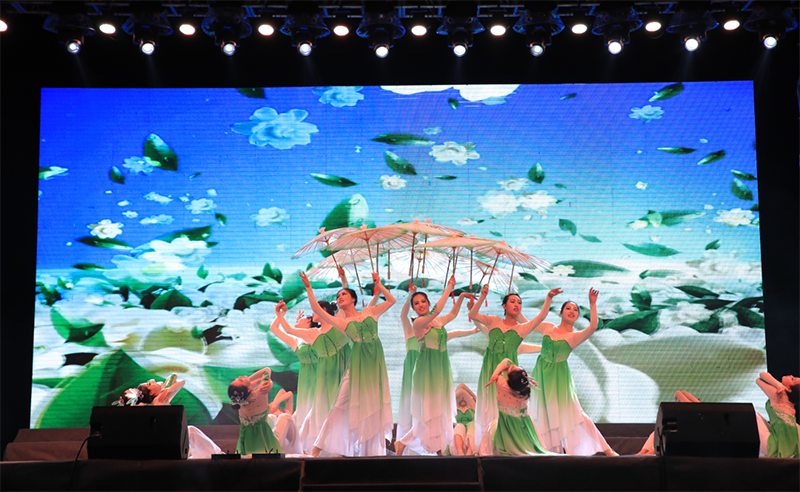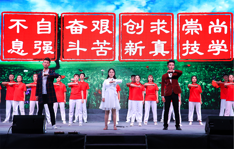 晚會中,在音樂學(xué)科專業(yè)頗有建樹的幾位老師表演了高水準的器樂合奏《贊歌》,讓師生陶醉于器樂演奏的優(yōu)美旋律和意境,贏得了全場經(jīng)久不息的掌聲。大學(xué)生藝術(shù)團舞蹈隊和聲樂隊表演的歌伴舞《紅旗飄飄》《美麗中國》激情四射、唯美動聽,詮釋了青年學(xué)子對祖國的熱愛和深情祝福。人文藝術(shù)教育系選送的現(xiàn)代舞《追逐夢想》用歡快的舞步展現(xiàn)了青年最富有朝氣、最富有夢想的精神風(fēng)貌,《茉莉花開》更是讓師生陶醉于傳統(tǒng)舞蹈的優(yōu)美意境。雙人舞表演《鄉(xiāng)·遠方》舞蹈動作豪放、粗狂但不失委婉、細致,為我們呈現(xiàn)出“天之驕子”的氣概。校園好聲音教師組冠軍和學(xué)生組冠軍合唱的歌曲《你是我的眼》傳唱了職院好聲音,定格了大家的青春記憶。校園二把手樂隊帶來的歌曲《平凡之路》引起全場轟動,將晚會推向了高潮,同學(xué)們紛紛點亮了自己的手機,現(xiàn)場匯成了一片充滿歌聲的“星?!薄?/p>