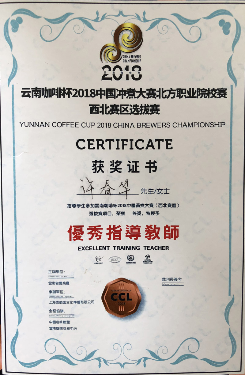 我院學生榮獲“云南咖啡杯2018中國沖煮大賽北方職業(yè)院校賽西北賽區(qū)選拔賽”季軍