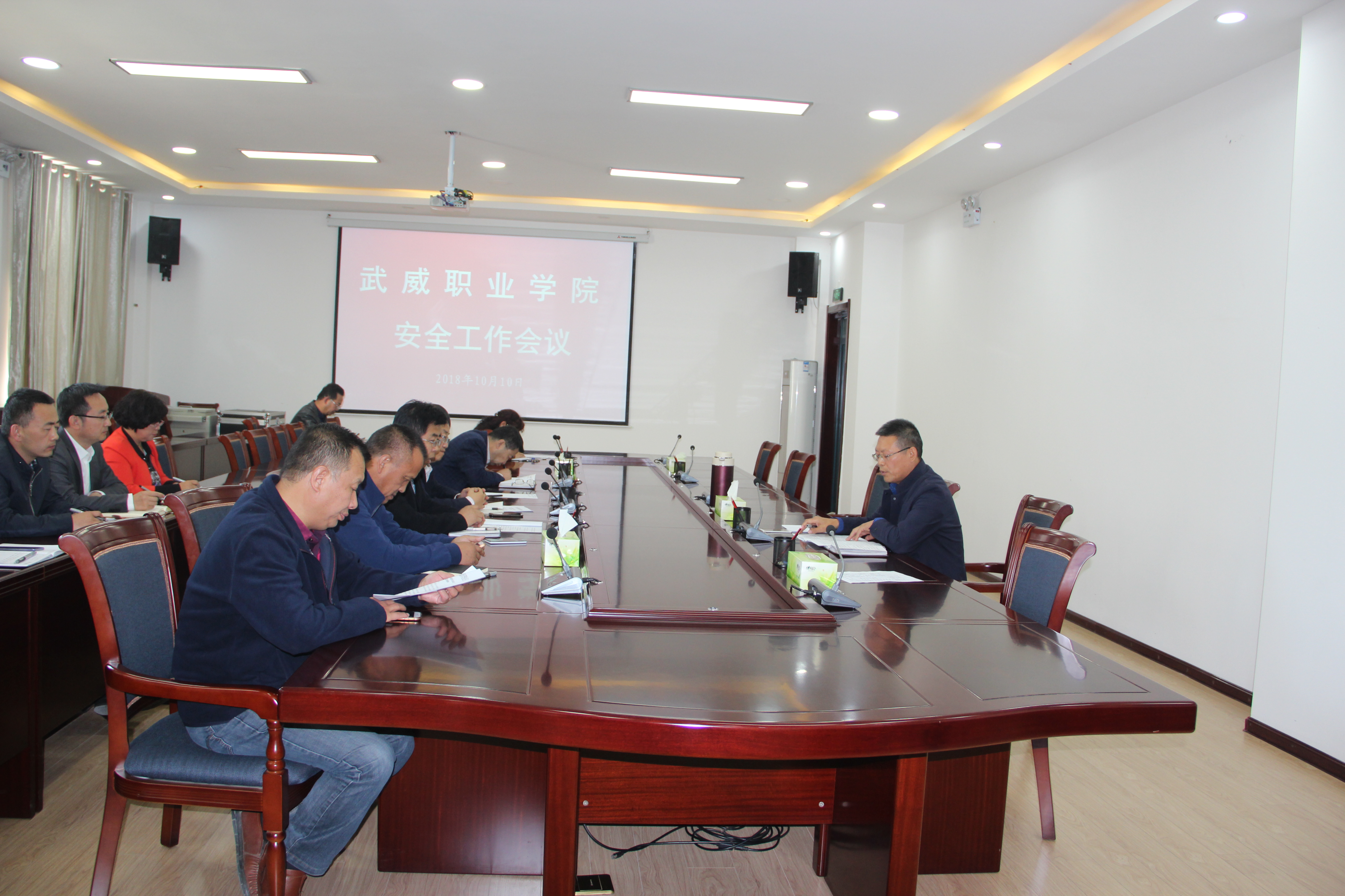 會議傳達學習了《地方黨政領導干部安全生產責任制規(guī)定》《甘肅省高校后勤改革管理辦公室關于開展普通高等學校學生公寓安全專項緊急檢查的通知》和《武威市委市政府關于進一步加強安全生產的緊急通知》等文件精神,對學院安全工作提出了新的要求。