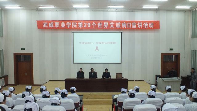 12月1日被世界衛(wèi)生組織確立為“世界艾滋病日”。在第29個“世界艾滋病日”來臨之際,學院聯(lián)合武威市衛(wèi)計委、武威市疾控中心等多家單位,舉辦了主題為“攜手抗艾、重在預防”的系列宣傳活動,通過艾滋病知識講座、主題演講比賽、萬人簽名儀式等活動,宣傳普及了艾滋病預防知識,提高了學院師生對艾滋病防治工作的認識,為營造關心關愛艾滋病病人和感染者以及防治艾滋病創(chuàng)造了良好的社會氛圍。