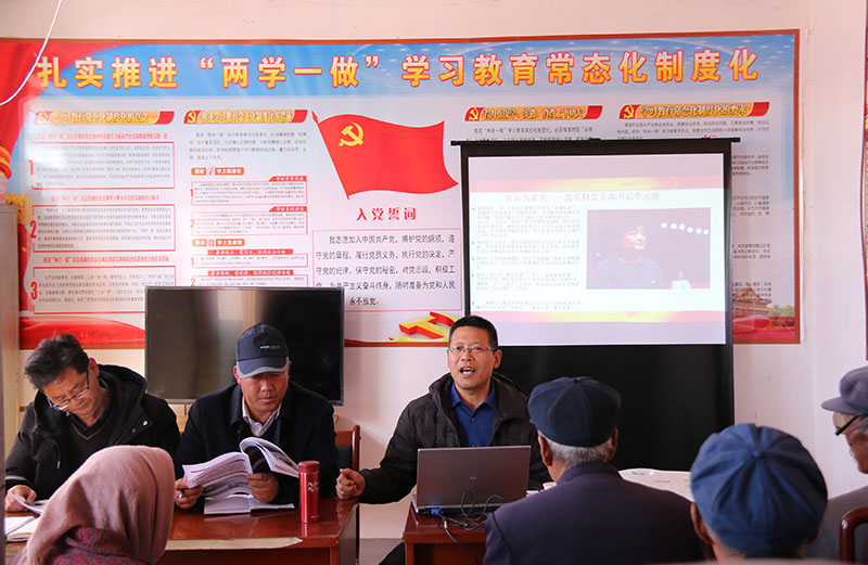 王永緒副教授以《榜樣3》專題片入手,以黨的十九大主題“不忘初心,牢記使命,高舉中國特色社會主義偉大旗幟,決勝全面建成小康社會,奪取新時代中國特色社會主義偉大勝利,為實(shí)現(xiàn)中華民族偉大復(fù)興的中國夢不懈奮斗”為主題,通過詳細(xì)講述蓋買村黨支部書記李元敏、只為百姓笑——魯家村黨委書記朱仁斌典型事跡,分享自己入黨初心,總結(jié)了虛心學(xué)習(xí)榜樣人物恪盡職守、敢于擔(dān)當(dāng)?shù)木?,甘于奉獻(xiàn)、勇于犧牲的崇高境界,淡泊名利、清廉自守的道德情操。最后希望,尚家臺村黨員干部要著力講好新時代自己的故事,靠一步一個腳印苦干加巧干,靠父老鄉(xiāng)親的支持,用平凡行動踐行脫貧致富深刻道理,樹立身邊的先進(jìn)典型模范事跡,詮釋黨的崇高理想,展現(xiàn)共產(chǎn)黨人不忘初心、牢記使命的執(zhí)著堅守,彰顯共產(chǎn)黨人信仰堅定、心系群眾、勇于擔(dān)當(dāng)、創(chuàng)新奉獻(xiàn)的精神風(fēng)貌,讓美麗鄉(xiāng)村建設(shè)的最終成果就是讓農(nóng)民富起來、笑起來。