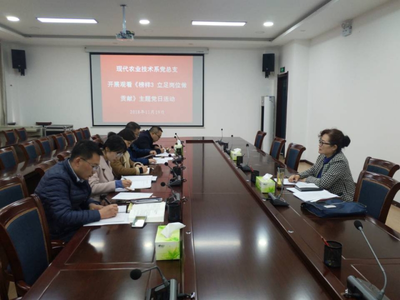 11月19日下午,現代農業(yè)技術系黨總支全體黨員在行樹樓二樓會議室開展了觀看《榜樣3 立足崗位做貢獻》主題當日活動。