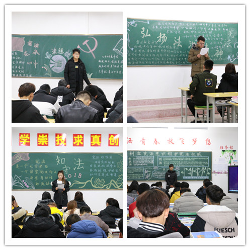 此次活動主題為“推動憲法實施,弘揚(yáng)憲法精神”,能源工程系通過開展國家憲法主題班會、組織師生觀看《憲法.專家談》專題節(jié)目、橫幅標(biāo)語宣傳等方式積極開展憲法教育宣傳工作,重點(diǎn)宣傳黨的十九大精神和習(xí)近平總書記關(guān)于全面依法治國重要論述、依憲治國、依憲執(zhí)政等理念;宣傳黨的領(lǐng)導(dǎo)是憲法實施最根本保證、憲法確立的國家根本制度、根本任務(wù)、公民的基本權(quán)利和義務(wù)等基本內(nèi)容。