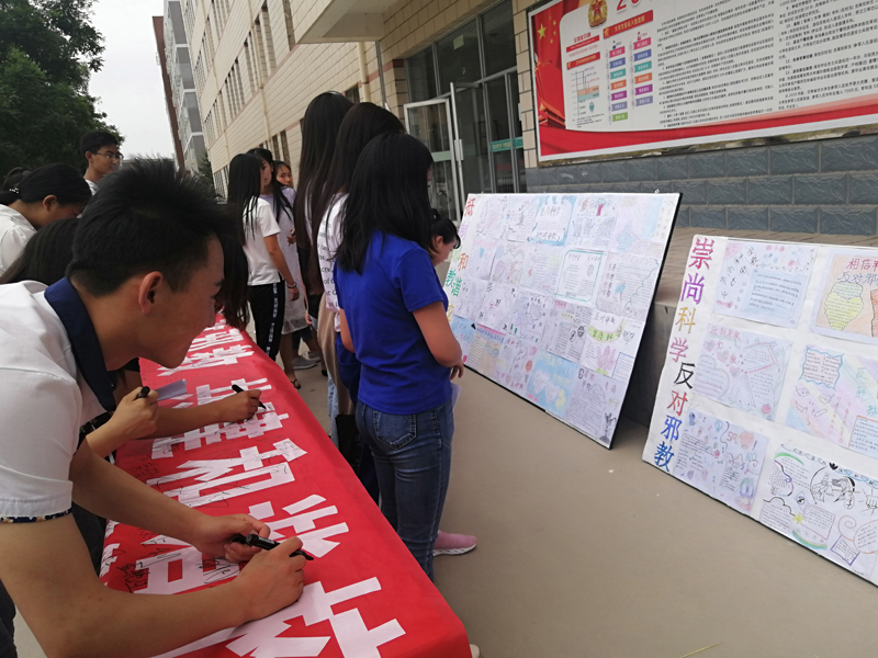 先后舉行“崇尚科學(xué),反對(duì)邪教,共建和諧校園”簽名活動(dòng)、開展“崇尚科學(xué),反對(duì)邪教”主題班會(huì)。班會(huì)課上,老師為學(xué)生講解什么是邪教組織以及邪教的危害,培養(yǎng)學(xué)生的理性思維,樹立正確的世界觀、人生觀、價(jià)值觀,用科學(xué)的精神自覺抵制邪教。并通過黑板報(bào),張貼反邪教手抄報(bào)等多種活動(dòng)形式,讓師生對(duì)邪教危害性有進(jìn)一步地了解,提高全社會(huì)反邪教、樹正氣的意識(shí)。以自己的實(shí)際行動(dòng),積極倡導(dǎo)、傳播科學(xué)思想,普及科學(xué)知識(shí),弘揚(yáng)科學(xué)精神,用科學(xué)的方法辦事,以科學(xué)的態(tài)度對(duì)待事物,共同促進(jìn)校園和諧發(fā)展,提高了師生認(rèn)識(shí)和抵制邪教的意識(shí)與能力。