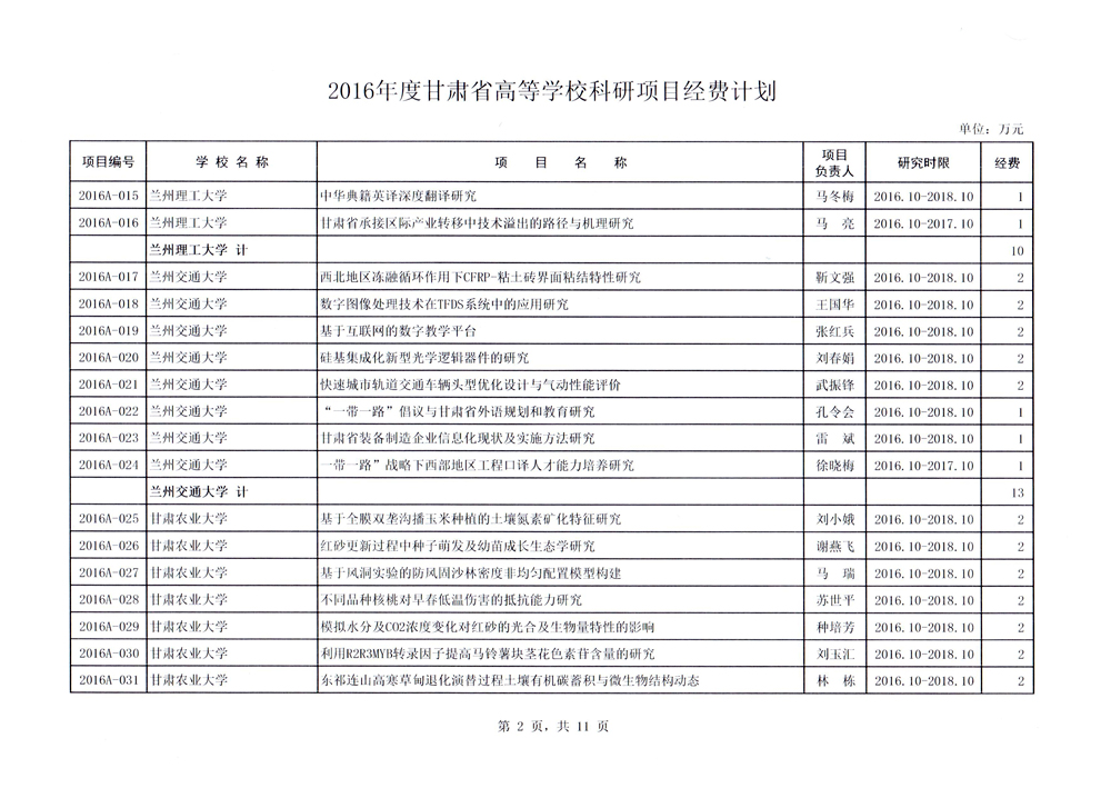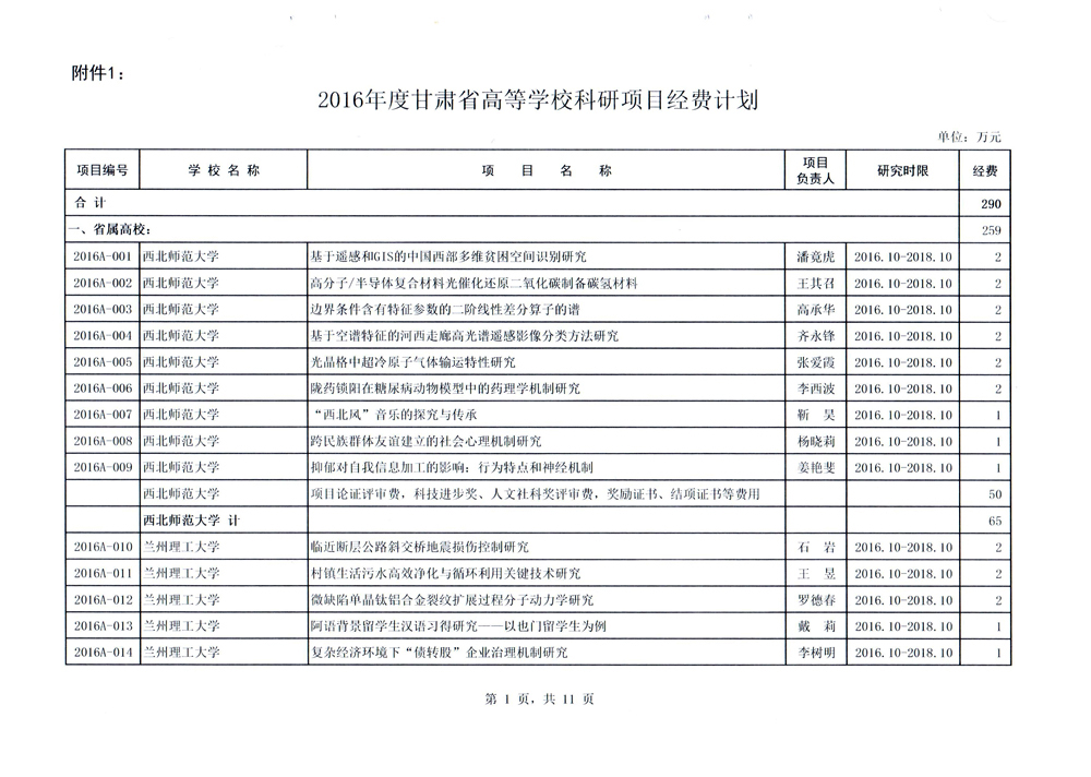 轉發(fā)甘肅省財政廳 教育廳文件 關于下達2016年度高校導師科研經費和“2011計劃”補助經費的通知