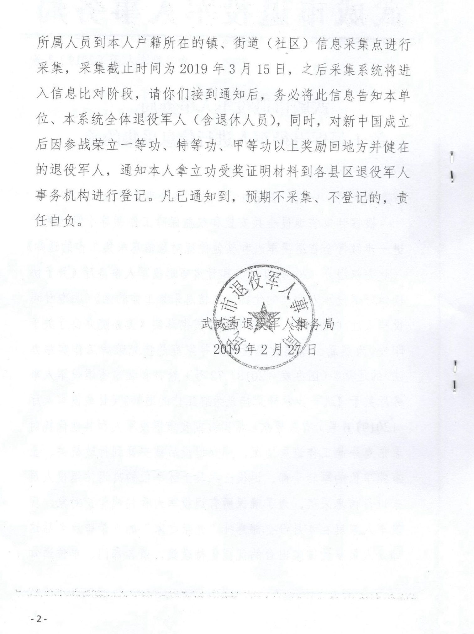 <轉(zhuǎn)發(fā)>武威市退役軍人事務(wù)局關(guān)于督促退役軍人進(jìn)行信息采集的函