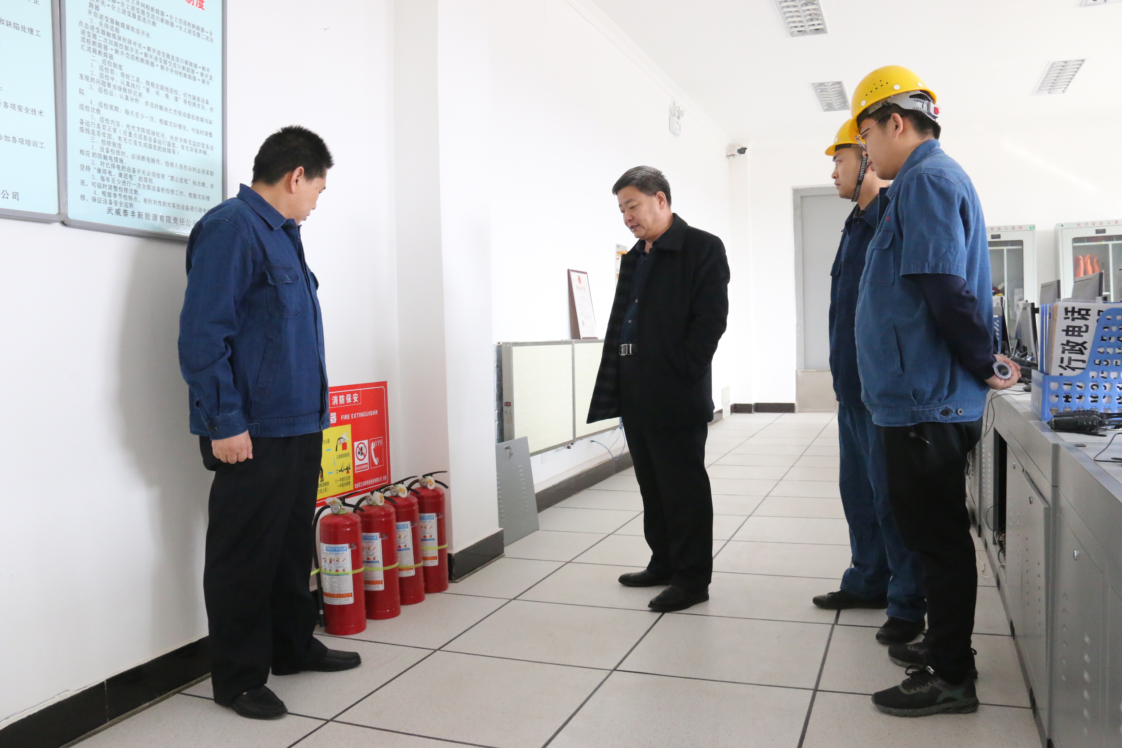 2019年2月25日,學(xué)院黨委書記、院長(zhǎng)趙明、副院長(zhǎng)翟存祥一行到校辦企業(yè)武威泰豐新能源有限責(zé)任公司古浪20兆瓦光伏扶貧電站檢查指導(dǎo)工作。趙明書記一行在公司負(fù)責(zé)人的陪同下深入電站中控室、光伏區(qū)、生活區(qū)等場(chǎng)地詳細(xì)了解了安全管理、電站運(yùn)營(yíng)和工作人員生活保障等情況,隨后進(jìn)行了座談交流。