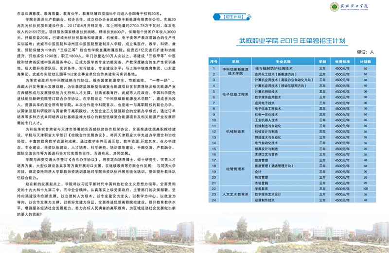 武威職業(yè)學(xué)院2019年單獨(dú)招生簡章(圖文版)