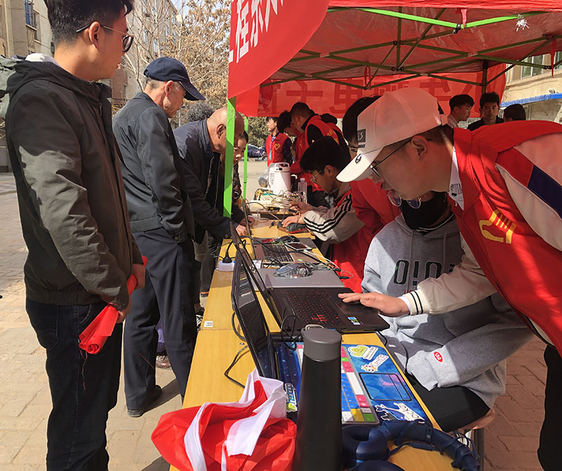 3月23日上午,我系小牛頓電子協(xié)會和計算機協(xié)會的志愿者們,來到泰安小區(qū)開展了以“發(fā)揚雷鋒精神,科技服務(wù)進社區(qū)”為主題的家電、電腦義務(wù)維修活動。志愿者們對小區(qū)居民送來的電水壺、電飯煲、微波爐、影碟機等家電進行了維修,受到了小區(qū)居民的歡迎。志愿者們還不辭辛苦,上門對有故障的電腦進行重裝系統(tǒng)、更新驅(qū)動等服務(wù),師生們認(rèn)真負(fù)責(zé)、一絲不茍的精神得到了居民們的贊許。