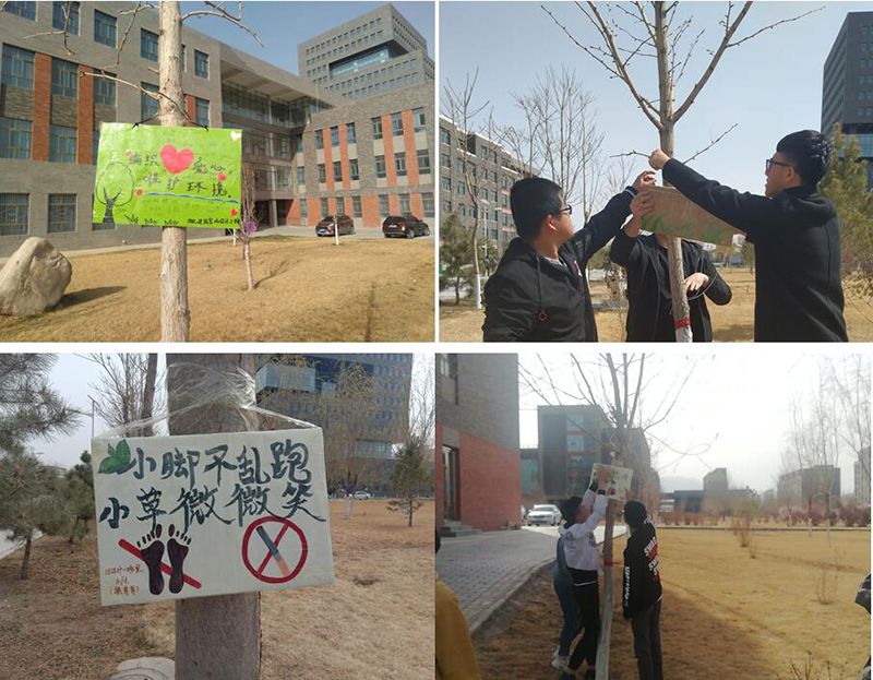 為助力創(chuàng)建文明城市,構(gòu)建文明綠色環(huán)保校園,4月2日建筑工程系學(xué)生分會(huì)聯(lián)合各班級(jí)在環(huán)境區(qū)域設(shè)立愛(ài)護(hù)校園草坪的標(biāo)語(yǔ)牌活動(dòng)。
