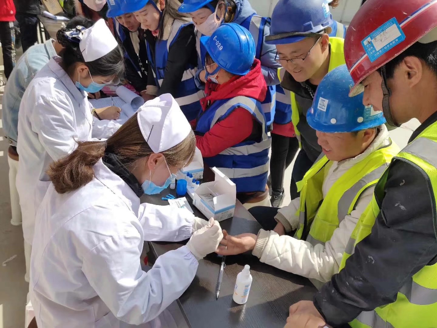 ? ? 到達活動現(xiàn)場后,疾控中心工作人員和志愿者們在聶老師和楊杰的安排下,按照預定方案迅速進入到工作狀態(tài) ,為工作在那里的300多名農(nóng)民工人測量血壓、檢查視力、檢測丙肝和艾滋病病毒;宣傳健康知識并贈送春季常見傳染疾病及艾滋病病毒預防宣傳手冊;活動結束時,還為中建四局的農(nóng)民工人發(fā)放了活動紀念品。