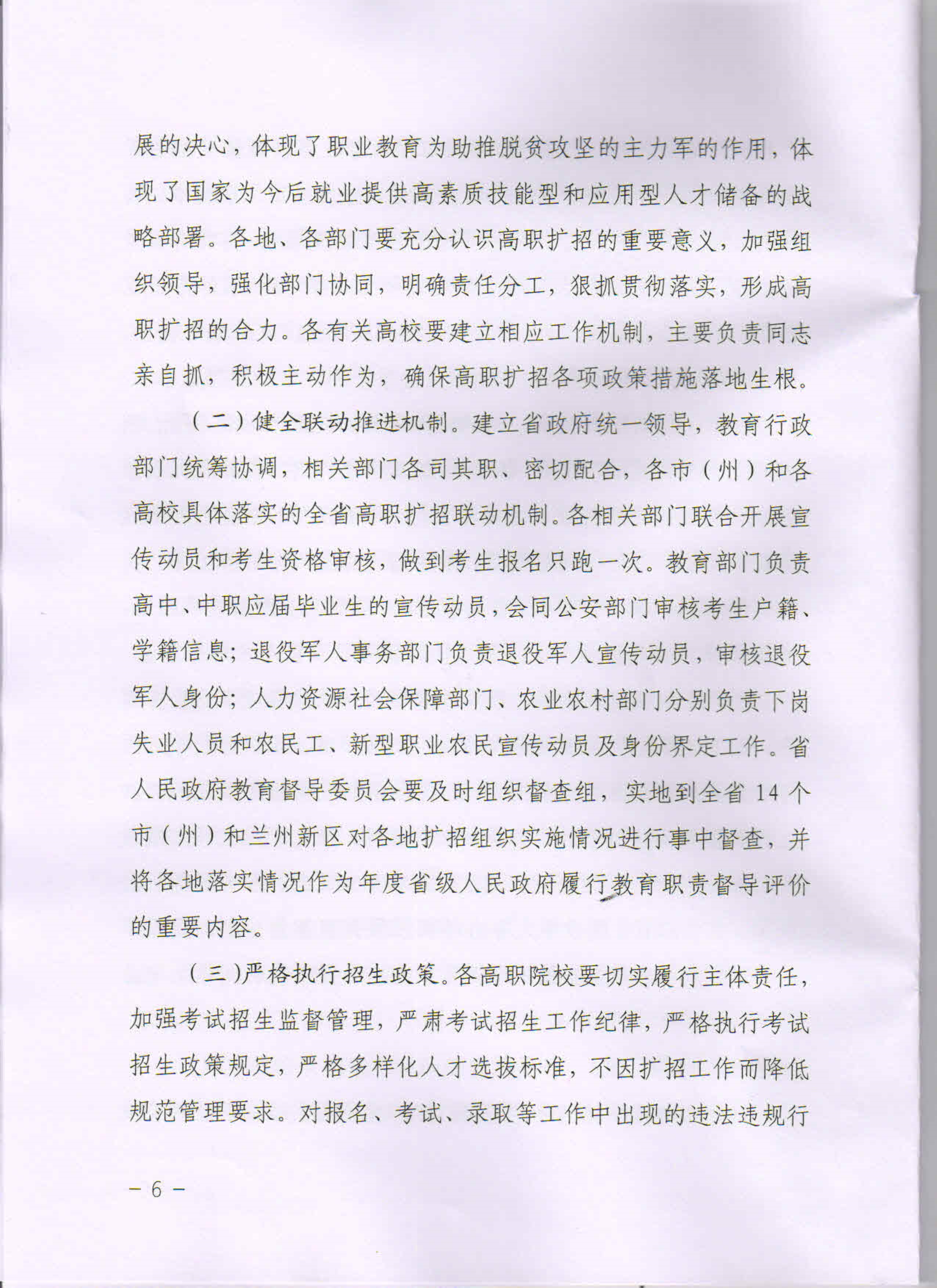 甘肅省高等職業(yè)教育擴(kuò)招專項(xiàng)工作實(shí)施方案