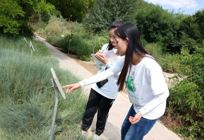 當天下午,全體實踐團成員前往民勤治沙綜合試驗站,參觀了民勤站的實驗設施和固沙技術(shù)示范區(qū),以及民勤沙生植物園。