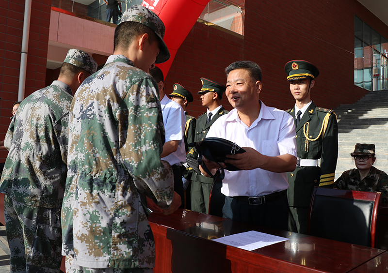 翟存祥代表學(xué)院向軍訓(xùn)教官表示衷心的感謝,祝愿應(yīng)征入伍的同學(xué)們在部隊(duì)進(jìn)一步譜寫人生華章,并向參加軍訓(xùn)的全體同學(xué)致以親切的問候。他指出,舉行大學(xué)生應(yīng)征入伍歡送儀式,就是要鼓勵大學(xué)生樹立“天下興亡,匹夫有責(zé)”的國防教育觀念,軍訓(xùn)旨在培養(yǎng)同學(xué)們的國防意識和愛國主義精神,培養(yǎng)同學(xué)們的組織紀(jì)律觀念,磨練同學(xué)們意志品德,培育和踐行社會主義核心價(jià)值觀!他要求參訓(xùn)學(xué)生要堅(jiān)守目標(biāo),做遵紀(jì)守法的優(yōu)秀戰(zhàn)士;要刻苦訓(xùn)練,做軍事訓(xùn)練的優(yōu)秀學(xué)子;要勵志成才,做中國特色社會主義合格建設(shè)者和可靠接班人。他希望同學(xué)們牢記習(xí)近平總書記的殷殷囑托、諄諄教誨,不忘初心、牢記使命,勇于擔(dān)當(dāng)這個(gè)時(shí)代賦予的歷史責(zé)任,樹立遠(yuǎn)大理想,堅(jiān)持勵志勤學(xué),在激情奮斗中綻放青春光芒,立志成為中國特色社會主義偉大事業(yè)的有用人才。