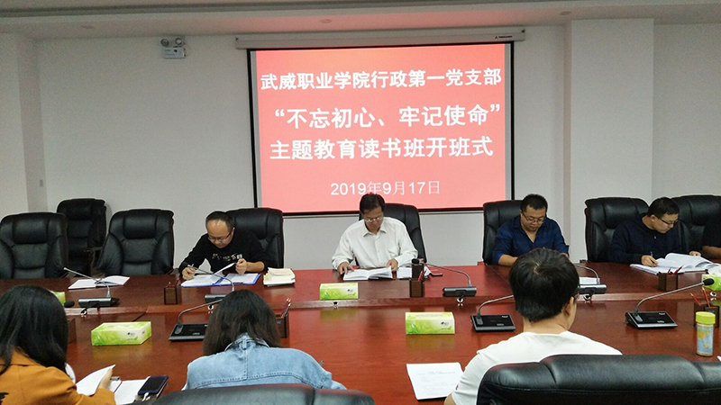 張開禮傳達(dá)了中共武威職業(yè)學(xué)院委員會(huì)印發(fā)《中共武威職業(yè)學(xué)院委員會(huì)關(guān)于開展“不忘初心、牢記使命”主題教育的實(shí)施方案》的通知、中共武威職業(yè)學(xué)院委員會(huì)關(guān)于開展“不忘初心、牢記使命”主題教育的通知、行政第一黨支部關(guān)于開展“不忘初心、牢記使命”主題教育的工作安排。