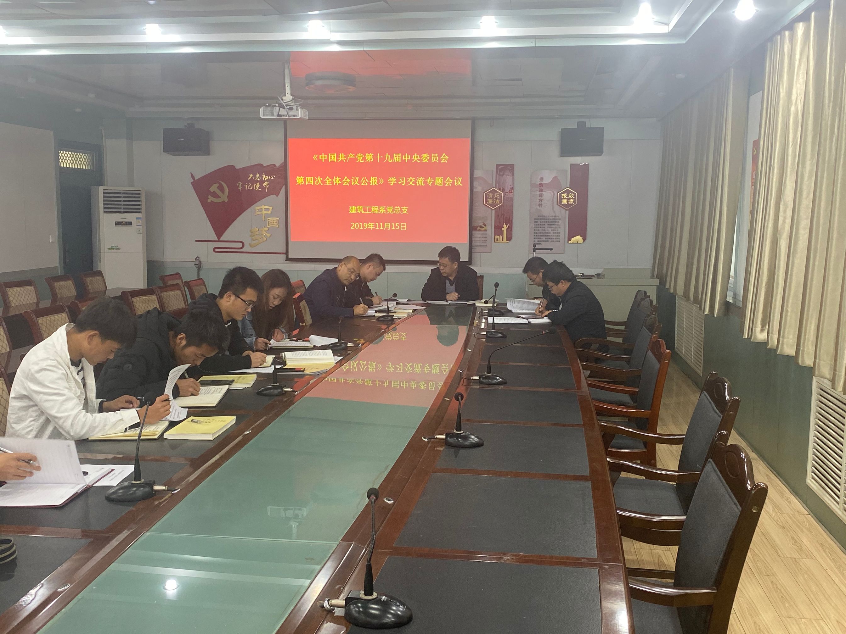 11月15日下午,建筑工程系黨總支在博學(xué)樓二樓黨員活動(dòng)室召開中國(guó)共產(chǎn)黨第十九屆中央委員會(huì)第四次全體會(huì)議精神學(xué)習(xí)心得交流會(huì)議,會(huì)議由黨總支書記孫潤(rùn)元同志主持,建筑工程系全體教師參加會(huì)議。