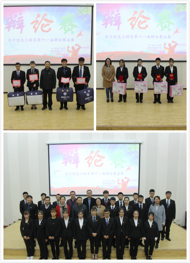 11月11日進(jìn)行了“集體成就個(gè)人”和“個(gè)人成就集體”為主題的辯論賽決賽。本次辯論賽共分為開篇立論、攻辯、攻辯小結(jié)、自由辯論、總結(jié)陳詞五個(gè)環(huán)節(jié)。在整個(gè)比賽中,雙方辯手爭鋒相對,步步緊逼,在最精彩的自由辯論環(huán)節(jié),選手你來我往,旁征博引,臺(tái)下掌聲不斷。經(jīng)過緊張而又激烈的角逐, 18電子信息工程技術(shù)大專班以精彩的表現(xiàn)獲得了辯論賽的冠軍。