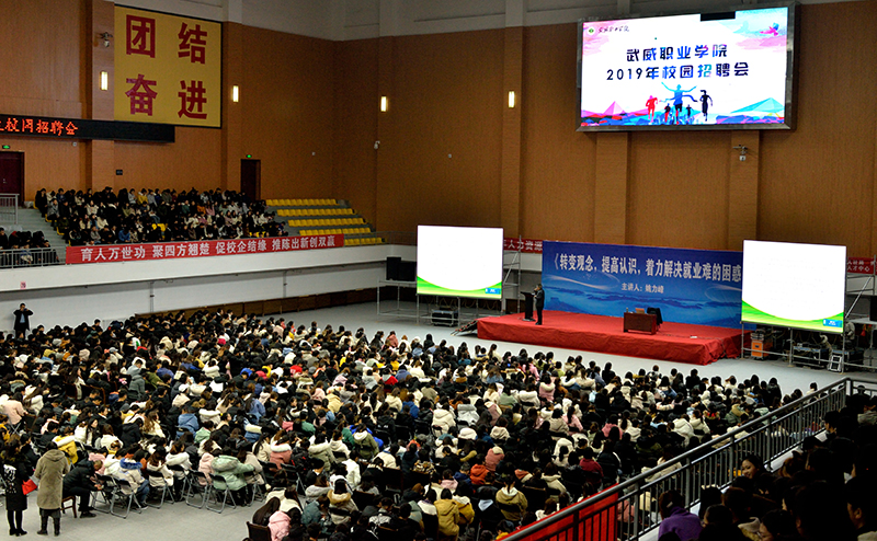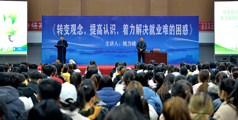 為貫徹2020屆全國普通高校畢業(yè)生就業(yè)創(chuàng)業(yè)工作網(wǎng)絡(luò)視頻會(huì)議精神,學(xué)院以習(xí)近平新時(shí)代中國特色社會(huì)主義思想為指導(dǎo),深入落實(shí)黨中央、國務(wù)院關(guān)于促進(jìn)高校畢業(yè)生就業(yè)創(chuàng)業(yè)的一系列重大決策部署,把畢業(yè)生就業(yè)工作擺在最突出位置,確保畢業(yè)生就業(yè)大局穩(wěn)定。12月14日上午,學(xué)院組織2020屆畢業(yè)生,在體育館參加了題為《轉(zhuǎn)變觀念,提高認(rèn)識(shí),著力解決就業(yè)難得困惑》的專家講座,引導(dǎo)畢業(yè)生轉(zhuǎn)變觀念、積極就業(yè)。講座由省人社廳人力資源市場(chǎng)檔案管理部部長姚力峰主講,招生就業(yè)處副處長董鵬主持。