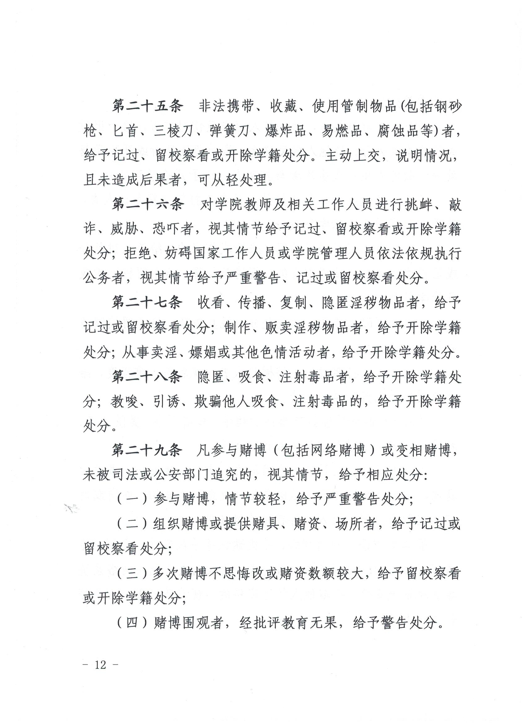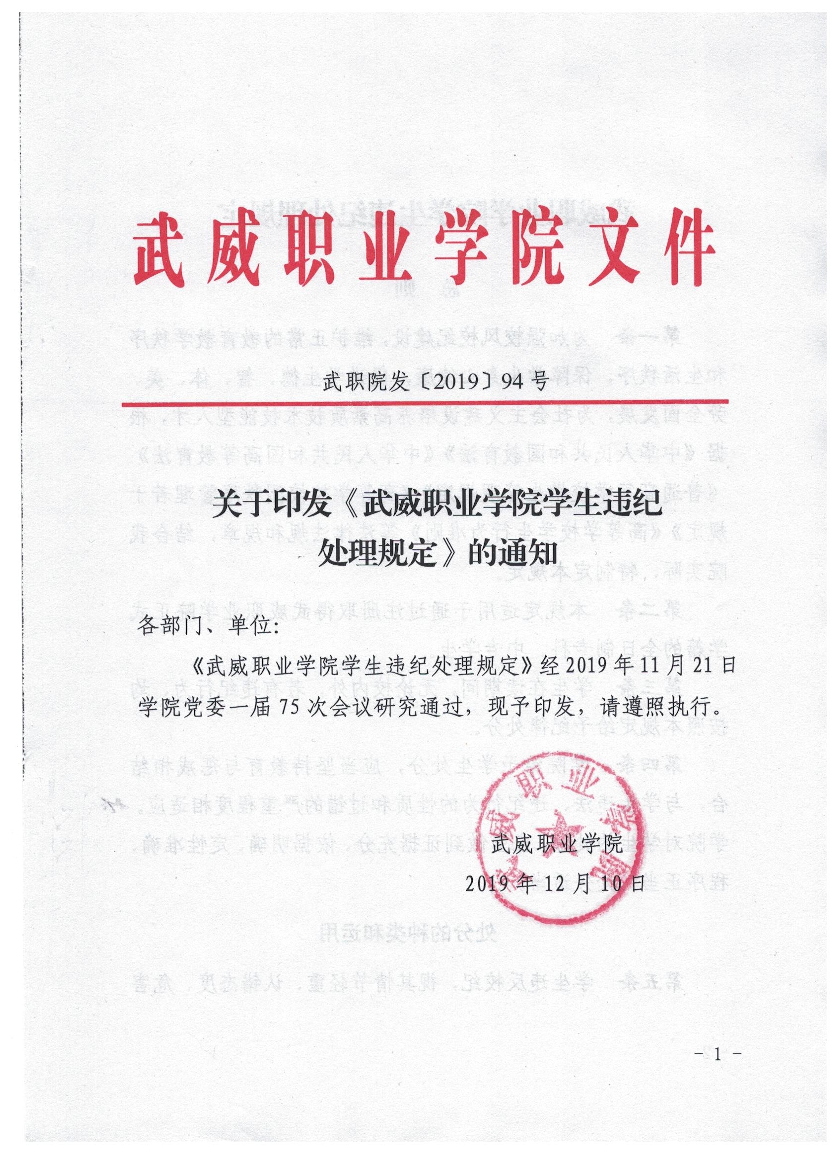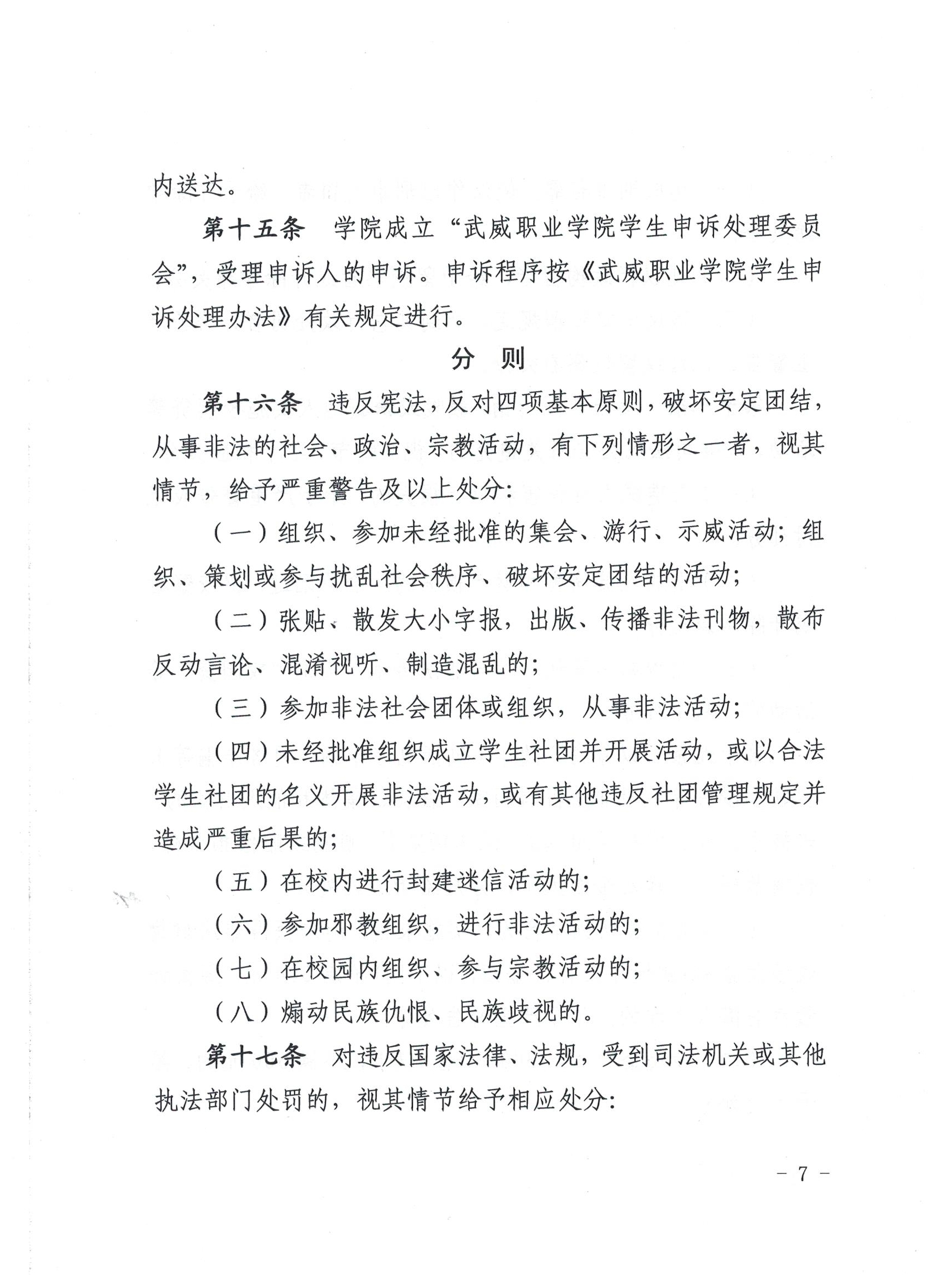 武威職業(yè)學(xué)院學(xué)生違紀(jì)處理規(guī)定