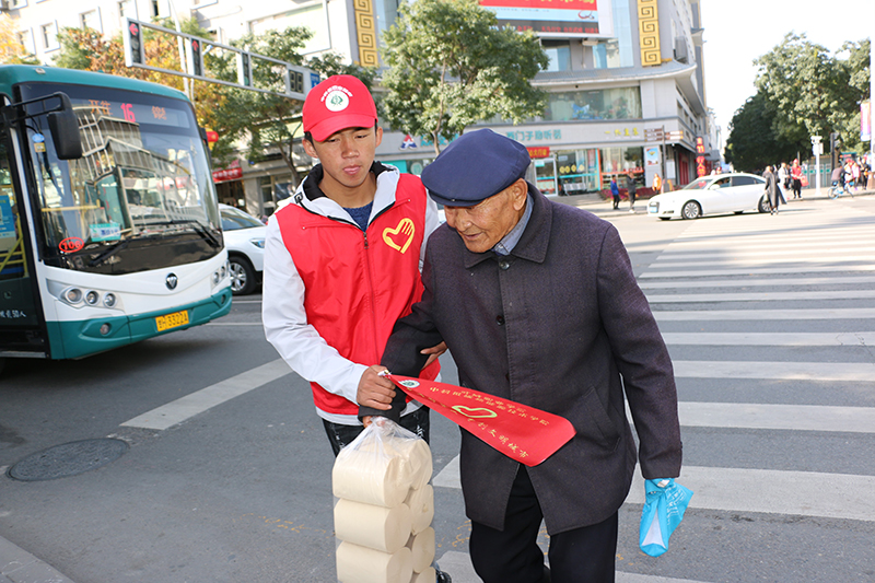 19日早上11點(diǎn),正值城市交通的高峰時(shí)段,身穿志愿者服裝,手持“爭(zhēng)當(dāng)文明市民、爭(zhēng)創(chuàng)文明城市”交通指揮旗的志愿者們站在大十字和北關(guān)十字執(zhí)勤位點(diǎn)上,認(rèn)真履行文明交通志愿者職責(zé),協(xié)助交警耐心地引導(dǎo)過(guò)往行人和非機(jī)動(dòng)車(chē)輛遵守交通規(guī)則。當(dāng)看到闖紅燈、等紅燈壓線等不文明交通行為時(shí),志愿者們會(huì)上前進(jìn)行禮貌地勸導(dǎo);當(dāng)遇到行動(dòng)不方便的老年人過(guò)馬路時(shí),志愿者們會(huì)熱心地幫助老人安全通過(guò)馬路,在志愿者們的示范引領(lǐng)下,十字路口的交通秩序顯著好轉(zhuǎn)。