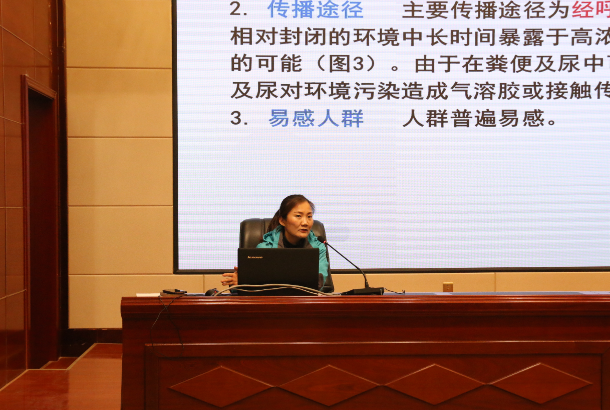張翠玲主任以《學(xué)校新冠肺炎感染防控知識(shí)培訓(xùn)》為題,從疫情防控的物資儲(chǔ)備、個(gè)人防護(hù)措施以及如何做好手部衛(wèi)生和正確佩戴口罩等方面進(jìn)行了詳細(xì)說明。