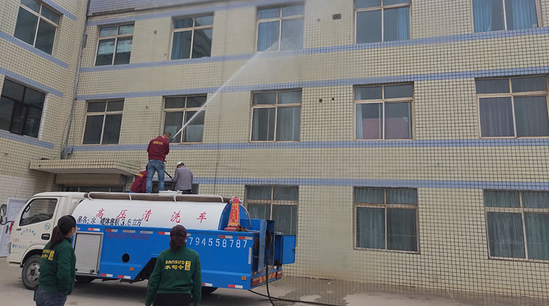 在行動現(xiàn)場,老師們和保潔人員手拿水桶、笤帚、抹布,認(rèn)真清洗道路邊花壇、路沿石、配電箱、垃圾桶等服務(wù)設(shè)施,仔細(xì)擦拭路標(biāo)路牌,認(rèn)真清掃道路垃圾。并對沿街建筑物(崇技樓)外立面、窗戶、門頭牌匾進(jìn)行高壓清洗。經(jīng)過徹底清洗,道路清潔有序,路標(biāo)路牌煥然一新,各類花草樹木青翠欲滴,設(shè)施設(shè)備亮麗如新。