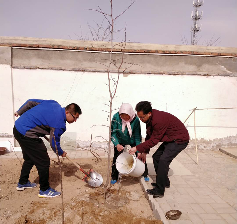 種下幾棵樹,是幫扶干部對貧困戶的美好祝愿,以及貧困戶來年的希望。也是學(xué)院師生用行動響應(yīng)武威市委、市政府加快推進生態(tài)大市建設(shè),建設(shè)生態(tài)宜居的美麗鄉(xiāng)村的號召。更是學(xué)院黨委踐行習(xí)近平總書記“牢固樹立綠水青山就是金山銀山理念”的寫真。伴隨著貧困戶和幫扶干部、駐村干部的精心栽培,房前屋后院內(nèi)的棗樹將一天天長大,來年秋天,那繁茂的枝頭將掛滿沉甸甸的果實,貧困群眾的生活也更加幸福美好。