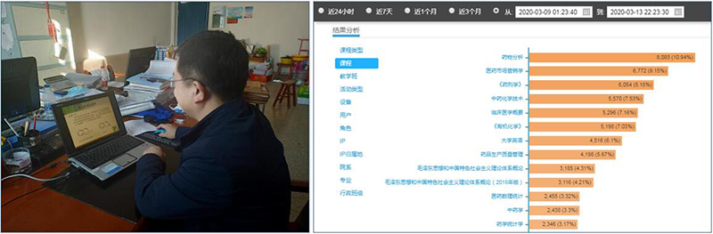截止3月13日,全院各教學(xué)系采用在線教學(xué)方式授課教師共272人,開課315門,比前兩周增加了31門,所有非實踐類課程均已開展在線教學(xué);學(xué)院第三周授課總學(xué)時達(dá)到1680學(xué)時,教師參加在線授課共計1787人次。
