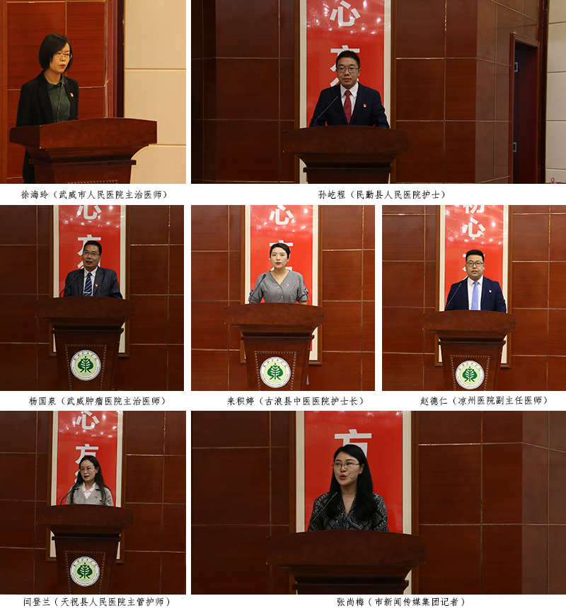 宣講報告團成員由6位援鄂優(yōu)秀隊員代表和市新聞傳媒集團的1位記者組成。宣講會上,武威市人民醫(yī)院主治醫(yī)師徐海玲、民勤縣人民醫(yī)院護士孫屹程、武威腫瘤醫(yī)院主治醫(yī)師楊國泉、古浪縣中醫(yī)醫(yī)院護士長來積婷、涼州醫(yī)院副主任醫(yī)師趙德仁、天??h人民醫(yī)院主管護師閆登蘭,市新聞傳媒集團記者張尚梅,用自己的親身經(jīng)歷和樸實生動的語言,從主動請戰(zhàn)、逆行出征、克服困難、參與救治、關(guān)愛患者、勝利歸來等多個方面,滿懷深情地講述了他們在支援湖北期間的難忘瞬間與暖心經(jīng)歷。他們用實際行動譜寫了一曲感天動地的英雄贊歌,生動詮釋了新時代武威精神,是武威人民的優(yōu)秀兒女,是當之無愧的“白衣戰(zhàn)士”、“最美逆行者”和“新時代最可愛的人”。會場不時響起如雷的掌聲。武威援鄂醫(yī)療隊全體成員以強烈的使命感和責任感,堅持奮戰(zhàn)在抗擊疫情的最前沿,展現(xiàn)了崇高的使命擔當,樹立了新時代的典型榜樣。