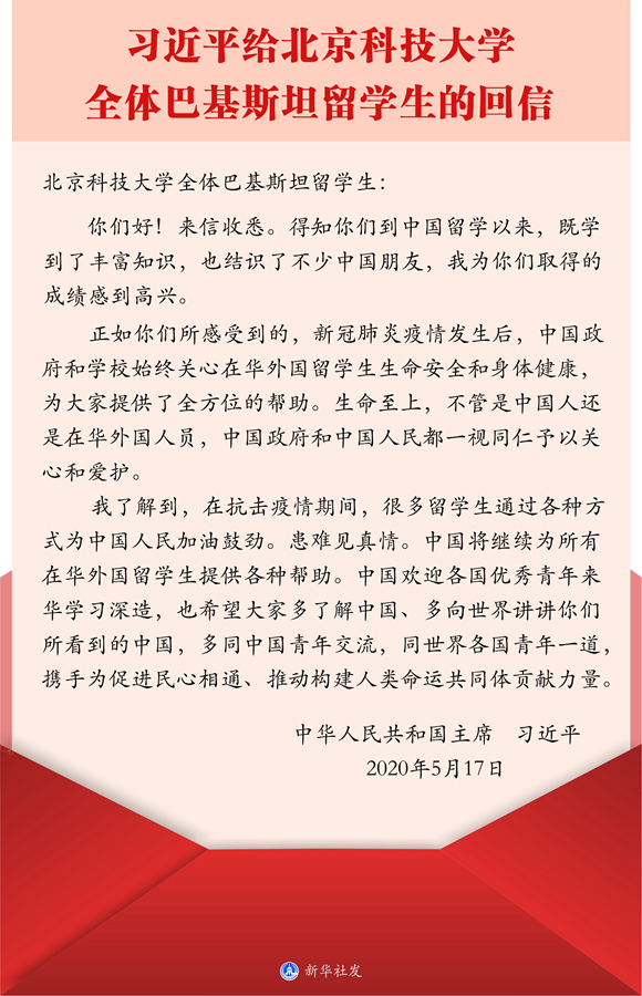 專題會(huì)后,國(guó)際合作與交流處工作人員組織留學(xué)生召開學(xué)習(xí)貫徹習(xí)近平總書記給北京科技大學(xué)全體巴基斯坦留學(xué)生回信精神專題視頻座談會(huì)。會(huì)議要求,全體留學(xué)生要認(rèn)真學(xué)習(xí)回信,要深刻領(lǐng)會(huì)回信的重大意義,要深刻領(lǐng)會(huì)回信的真情實(shí)感。留學(xué)生們一致對(duì)學(xué)院在新冠肺炎疫情暴發(fā)后給予的關(guān)心表示感謝,表示學(xué)有所成后要投身“一帶一路”建設(shè)、為增進(jìn)中外友誼做出貢獻(xiàn)。