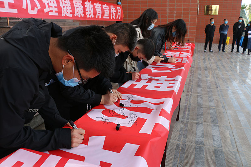儀式最后,參加活動的全體師生在“提升心理免疫力 筑高心理防護強”的宣傳橫幅上進行簽字,一起承諾特殊時期做好心理防護,用積極心態(tài)面對生活。