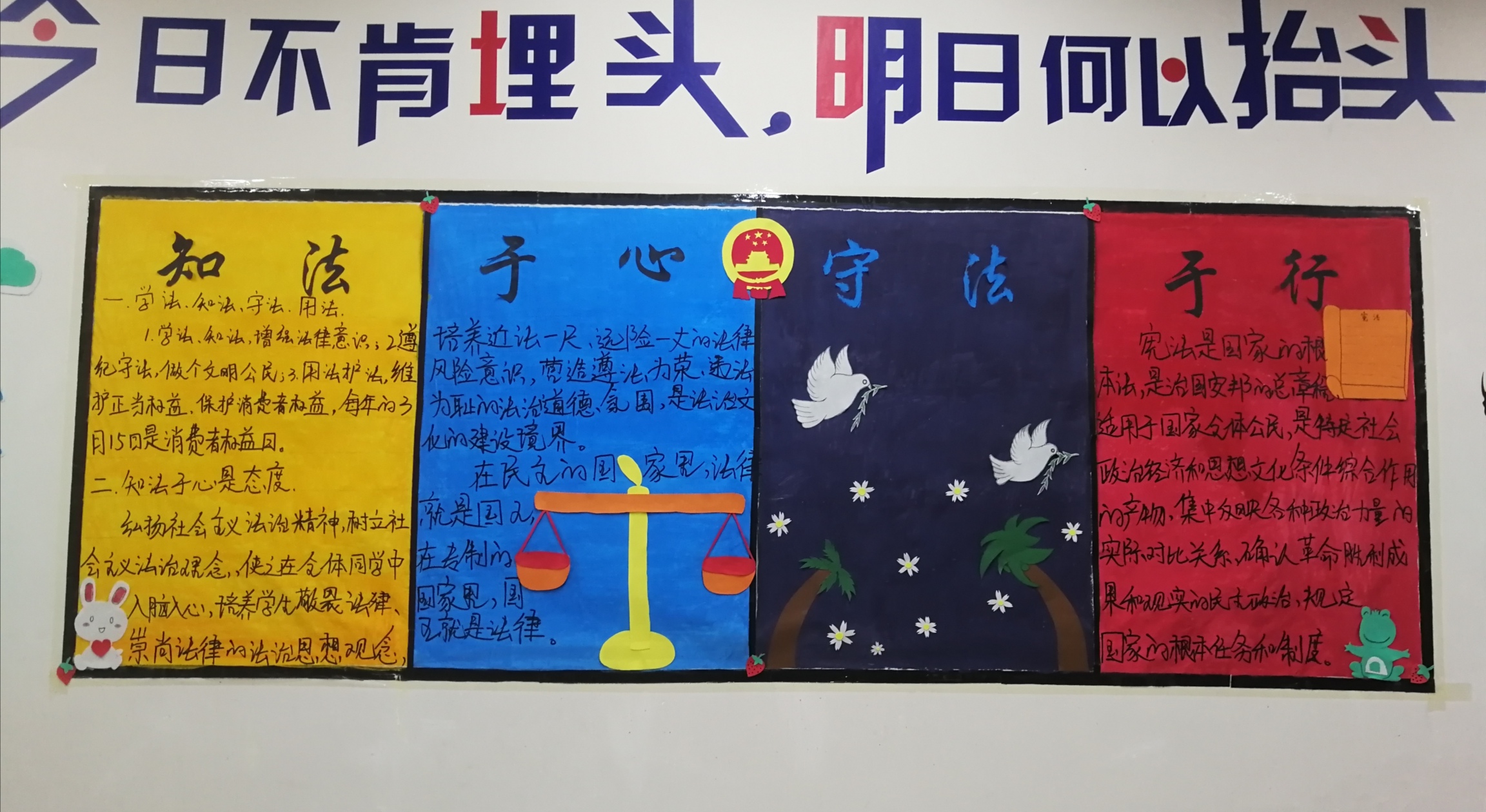 ?此次主題板報(bào)活動(dòng)的開展,進(jìn)一步充實(shí)了板報(bào)的宣傳教育功能,展現(xiàn)了我系學(xué)子良好的精神風(fēng)貌,培養(yǎng)了大學(xué)生知法守法的優(yōu)良品質(zhì),營(yíng)造了健康、積極進(jìn)取的學(xué)風(fēng),更加提升了學(xué)生的法律常識(shí)。我系將借此活動(dòng)為契機(jī),加強(qiáng)我系學(xué)生的法律道德意識(shí),引導(dǎo)我系學(xué)生知法于心,守法于行。