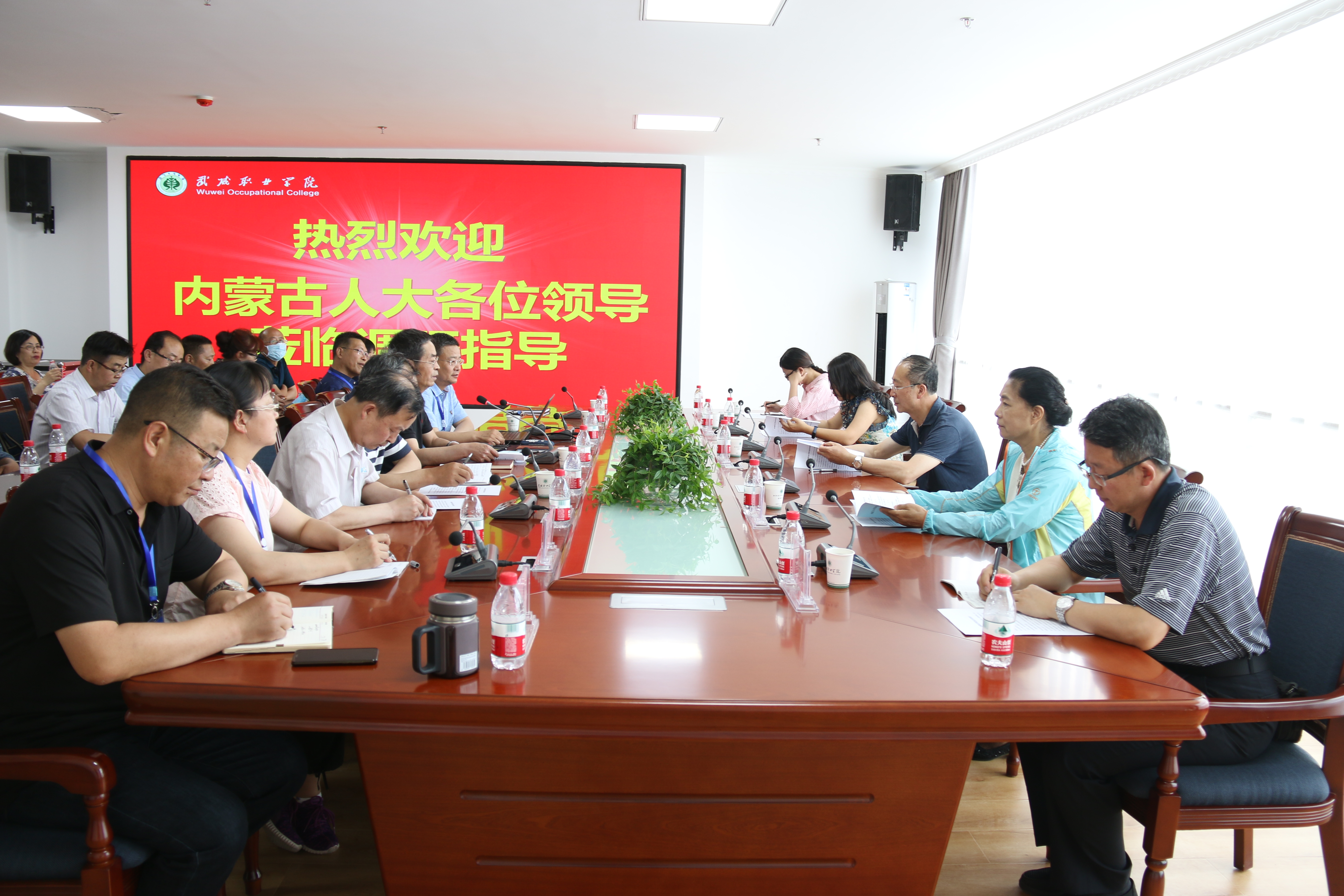 6月19日下午,內(nèi)蒙古自治區(qū)人大常委會(huì)教科文衛(wèi)工委副主任徐雪峰帶隊(duì)自治區(qū)人大常委會(huì)教科文衛(wèi)工委二級(jí)巡視員蘇燕,自治區(qū)教育廳高等教育處副處長(zhǎng)徐劼,自治區(qū)財(cái)政廳教育處李宗迪,自治區(qū)人大常委會(huì)教科文衛(wèi)工委二級(jí)主任科員趙彥卓一行到學(xué)院調(diào)研,武威市人大常委會(huì)副主任張承潛,武威市人大常委會(huì)教科文衛(wèi)工委副主任趙光輝一同調(diào)研。學(xué)院黨委書(shū)記、院長(zhǎng)趙明,黨委委員、副院長(zhǎng)王永緒、田迎春、何毅,紀(jì)委書(shū)記、監(jiān)察專員陳曉煜陪同調(diào)研。