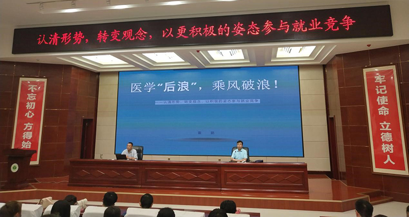 7月12日晚,護(hù)理系在大學(xué)生活動(dòng)中心菁英廳、明遠(yuǎn)樓211、213、311等四個(gè)會(huì)場(chǎng)舉辦“護(hù)理系2021屆畢業(yè)生就業(yè)指導(dǎo)講座”,邀請(qǐng)學(xué)院招生就業(yè)處副處長(zhǎng)董鵬同志作“醫(yī)學(xué)后浪、乘風(fēng)破浪”為主題的專題講座。護(hù)理系黨總支書記張建輝主持講座,護(hù)理系2021屆畢業(yè)班班主任、全體輔導(dǎo)員及2021屆全體畢業(yè)生共計(jì)647人參加講座。