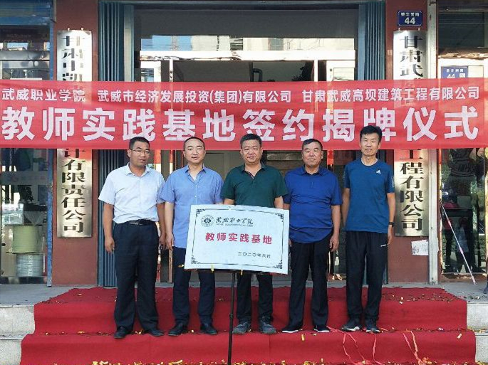 2020年8月9日,學(xué)院聯(lián)合武威市經(jīng)濟(jì)發(fā)展(集團(tuán))有限公司、甘肅武威高壩建筑工程有限公司,在甘肅武威高壩建筑工程有限公司大樓前舉行武威職業(yè)學(xué)院教師實踐基地簽約揭牌儀式。學(xué)院黨委書記、院長趙明,基建處負(fù)責(zé)人賈龍,建筑工程系副主任蔡濟(jì)眾,黨建負(fù)責(zé)人孫潤元;武威市經(jīng)濟(jì)發(fā)展(集團(tuán))有限公司董事長崔國斌、副董事長董英,甘肅武威高壩建筑工程有限公司總經(jīng)理周勝年出席簽約揭牌儀式。