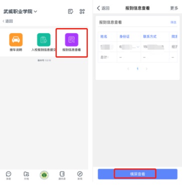 3.報到信息查看:點擊報到信息查看——查看報到明細(xì)(院系、班級、宿舍等信息)。