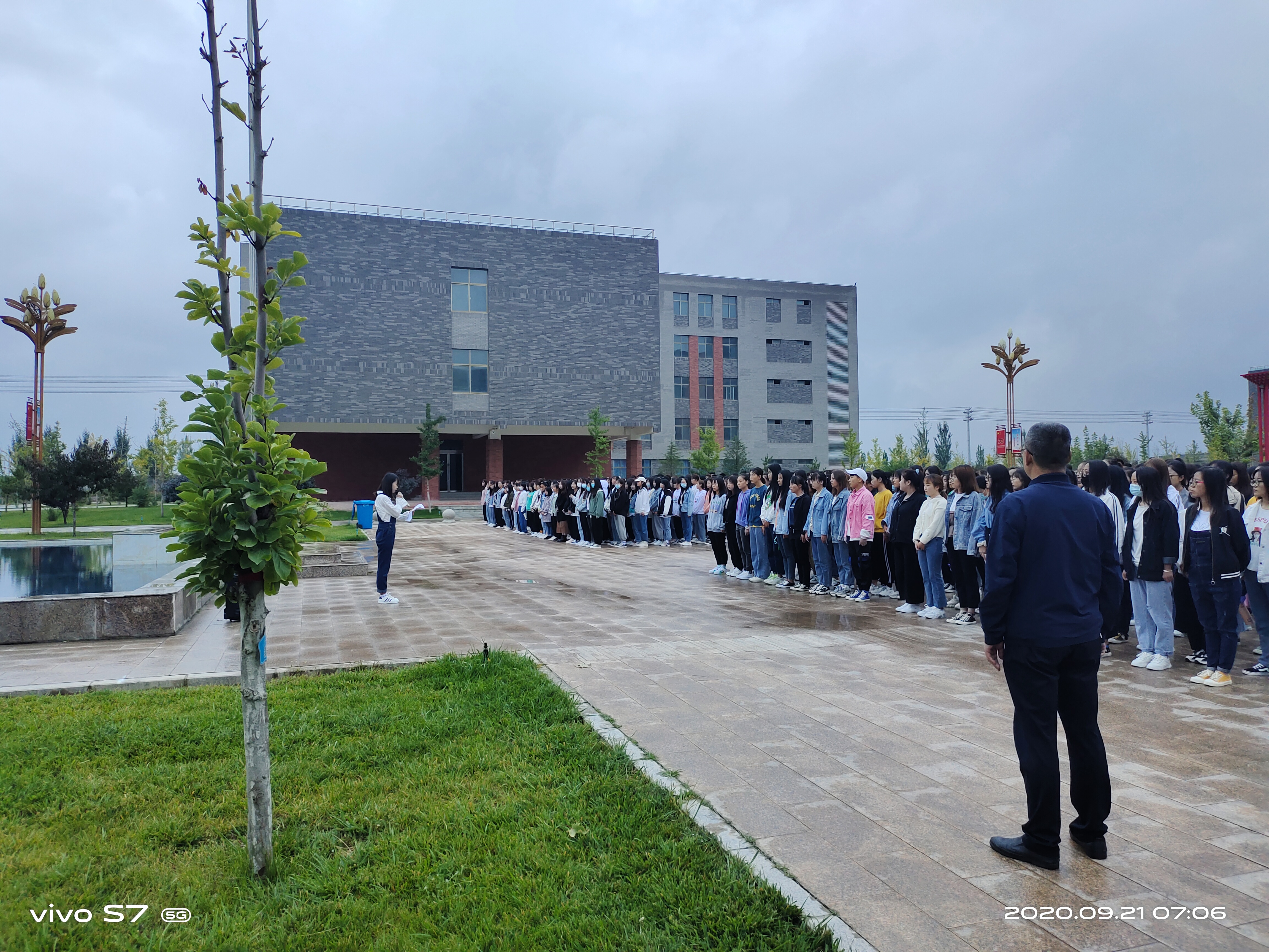 9月21日7點00分,藥學(xué)系在學(xué)院圖書館東廣場舉行升國旗儀式。系黨總支書記魏潤明、系副主任楊建美及藥學(xué)系700多名師生參加了此次升國旗儀式。