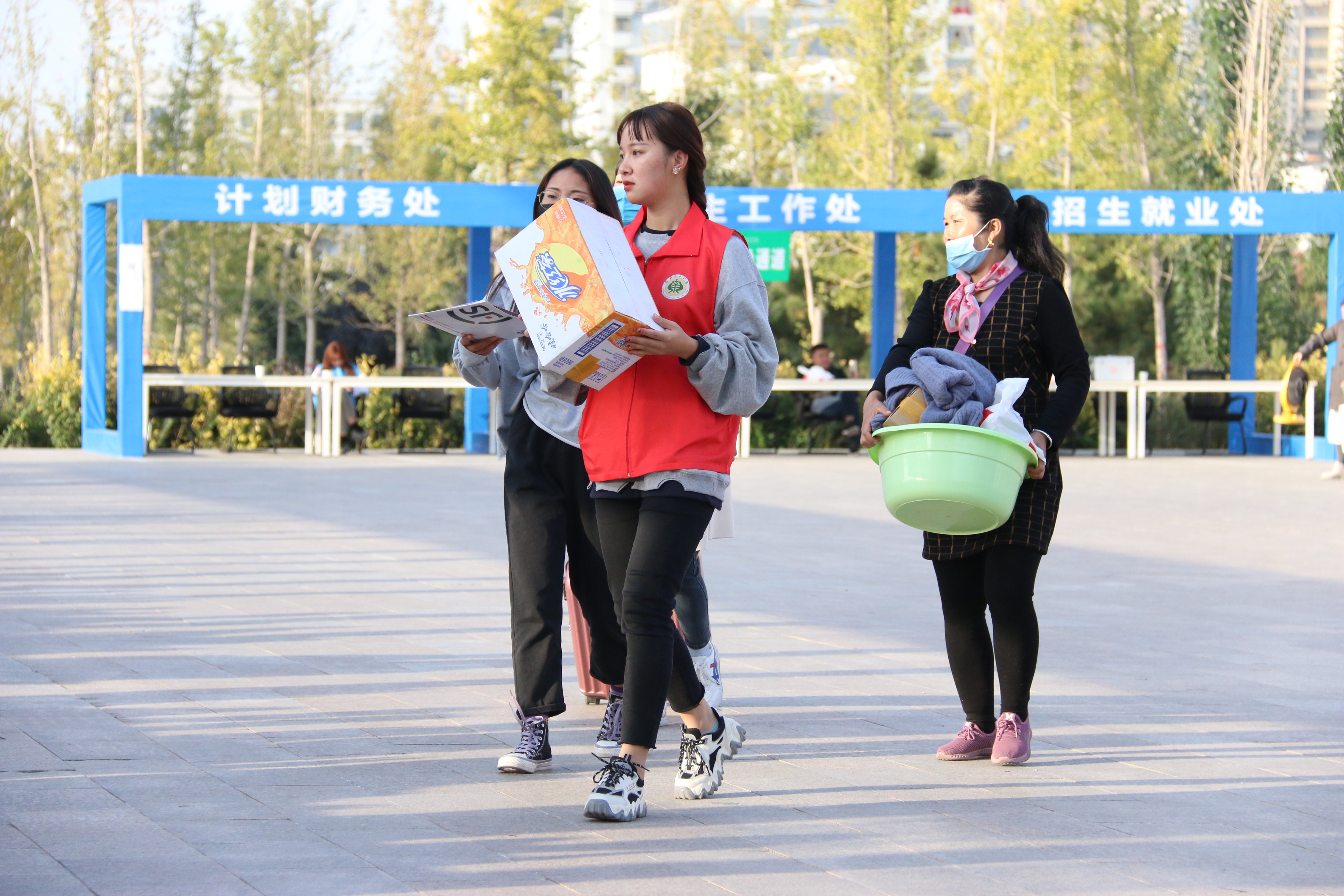 各院系的迎新人員熱情洋溢,各司其職,服務(wù)周到;工作人員耐心細(xì)致地為新生辦理入學(xué)手續(xù),提供咨詢服務(wù);學(xué)生志愿者成為一道溫暖而亮麗的風(fēng)景線,他們引領(lǐng)著新生和家長穿梭在校園內(nèi),為他們介紹校園情況、解答各種問題。